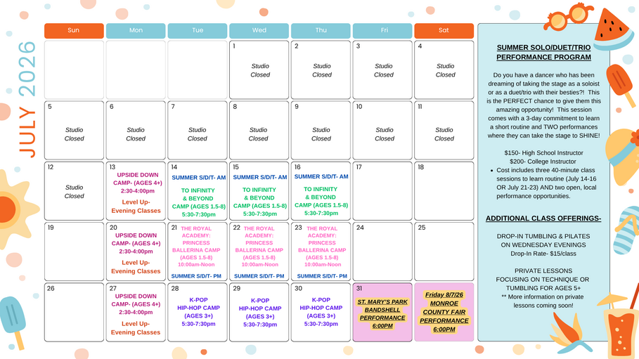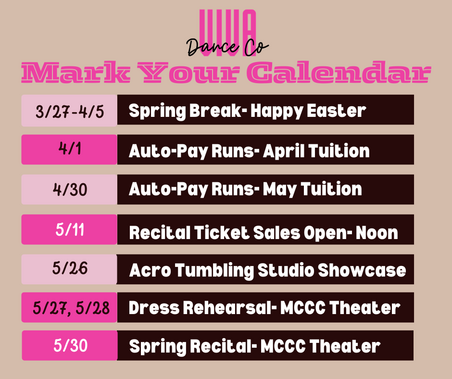 ​Winter Session is currently CLOSED as we prepare for our upcoming Spring Recital, held May 30th! Stay tuned for our SUMMER class and camp schedule to post mid-april!!!